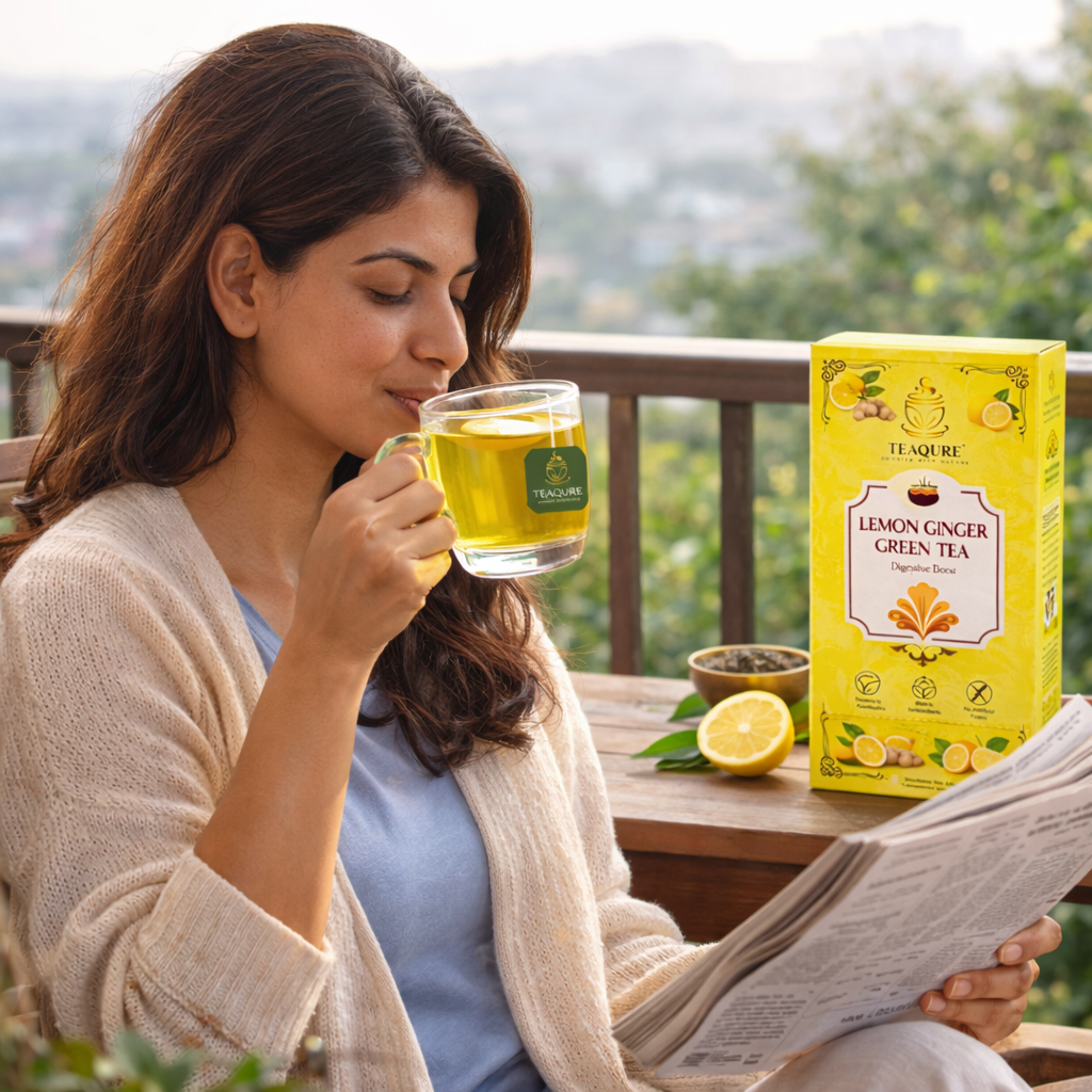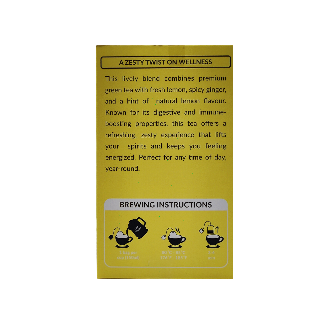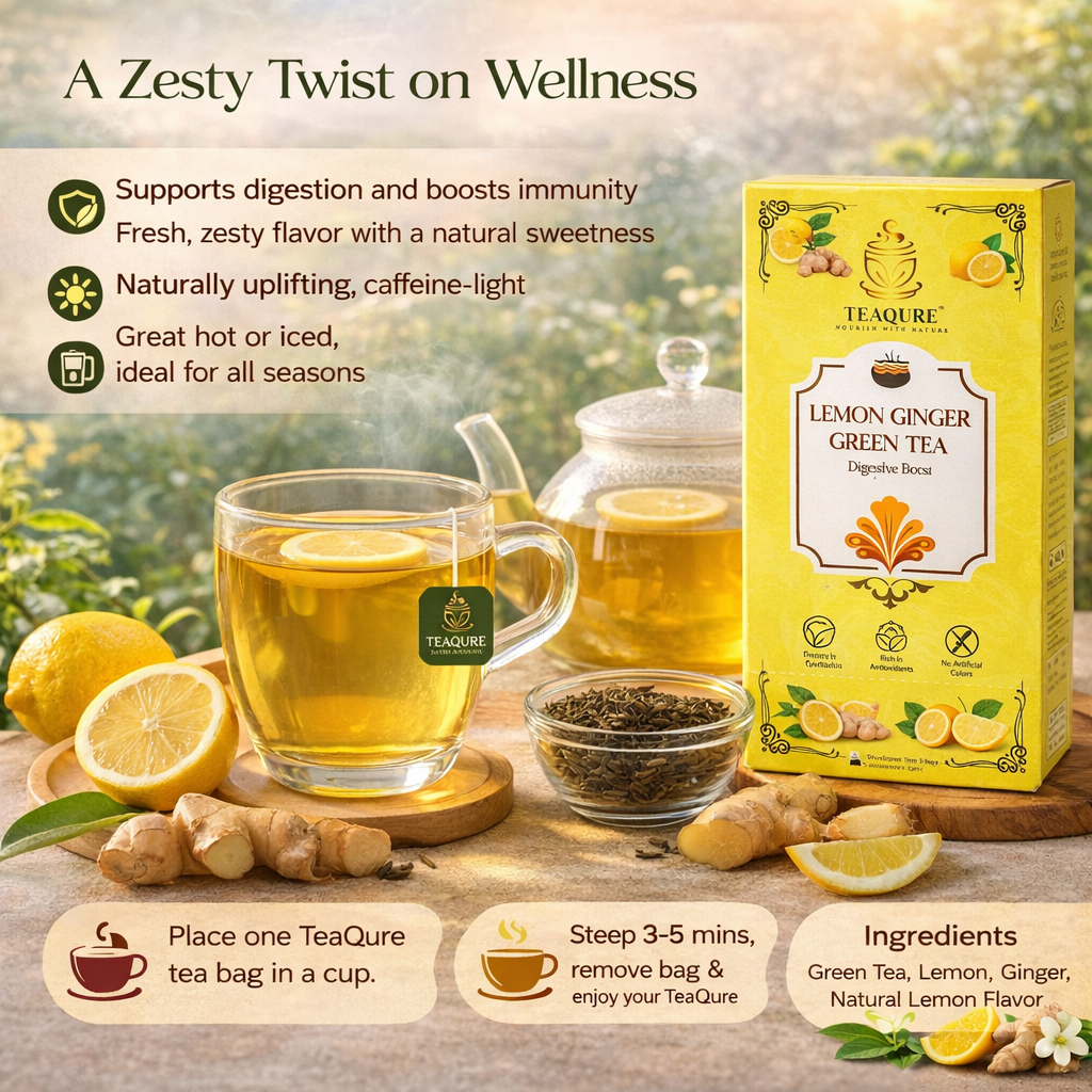 Awaken your senses with the invigorating blend of Lemon Ginger Green Tea, a refreshing and health-boosting infusion that combines the goodness of premium green tea leaves with the natural zest of lemon and the soothing warmth of ginger. This carefully crafted herbal tea is designed to provide a perfect balance of flavor, aroma, and wellness, making it an ideal daily beverage for tea lovers seeking both taste and health benefits in every sip. Green tea is celebrated worldwide for its abundance of antioxidants, catechins, and nutrients that support immunity, detoxify the body, and enhance metabolism. When blended with the citrusy brightness of lemon, it adds a tangy freshness that awakens your mood and rejuvenates your body. The natural ginger infusion complements this with its gentle spiciness and soothing qualities, known for aiding digestion, improving metabolism, and offering anti-inflammatory benefits. Together, lemon and ginger create a revitalizing harmony that uplifts your spirit and enhances overall wellness. This Lemon Ginger Green Tea is perfect for those looking to maintain a healthy lifestyle, support weight management, and enjoy a natural detox every day.