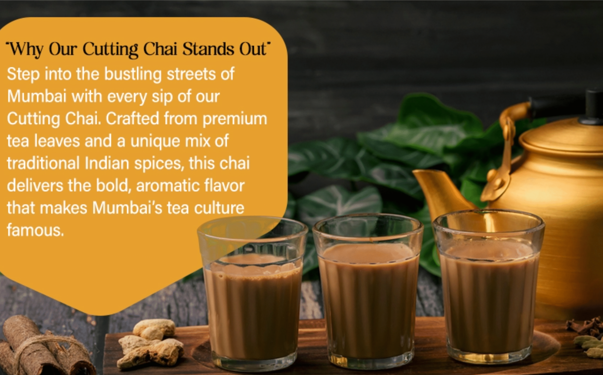 1. Taste: The flavor is rich, bold, and perfectly balanced – just like the authentic cutting chai you’d get at a Mumbai street corner. It has the right strength and depth that makes every sip refreshing and satisfying.