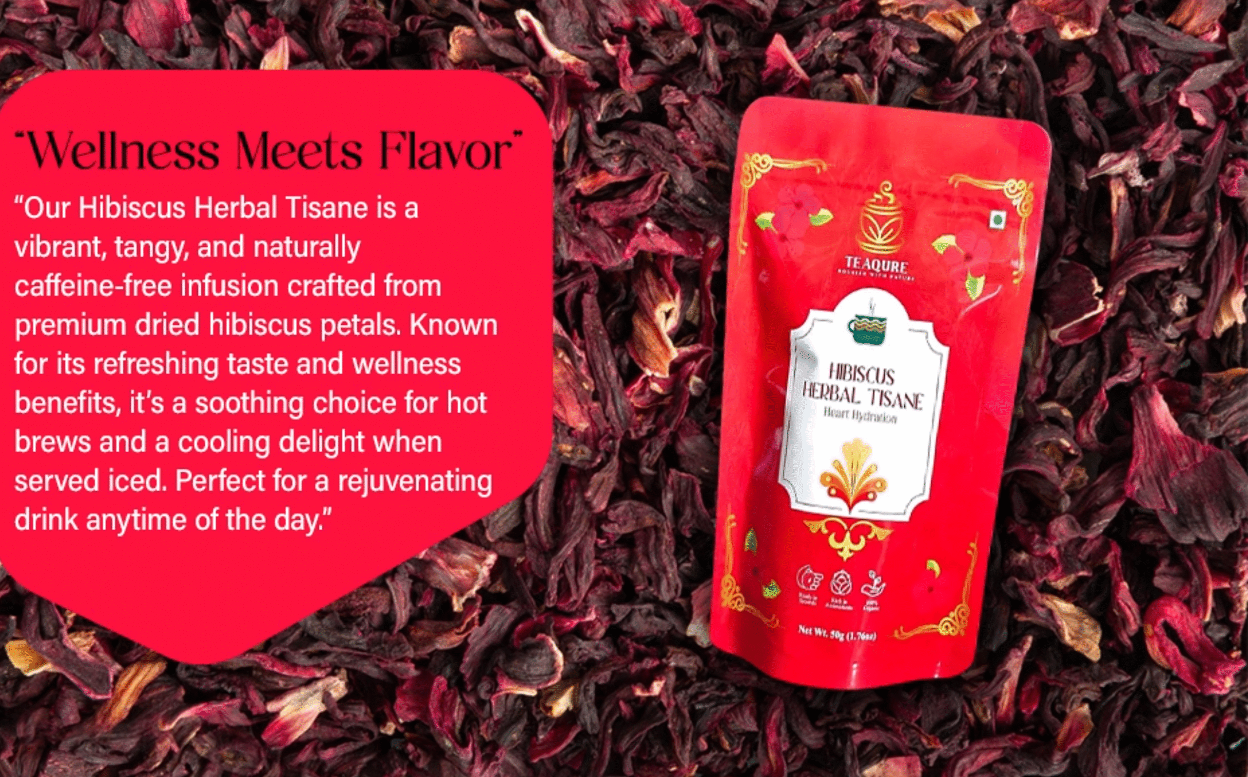 Hibiscus, celebrated for its vibrant color and tangy flavor, is the heart of this uplifting herbal tisane. Blended with antioxidant-rich cranberries and blueberries, zesty orange peel, and the calming notes of lemongrass and apple, this handcrafted infusion is a refreshing burst of natural goodness. A touch of licorice adds subtle sweetness, creating a perfectly balanced, caffeine-free brew that’s as revitalizing as it is delicious.