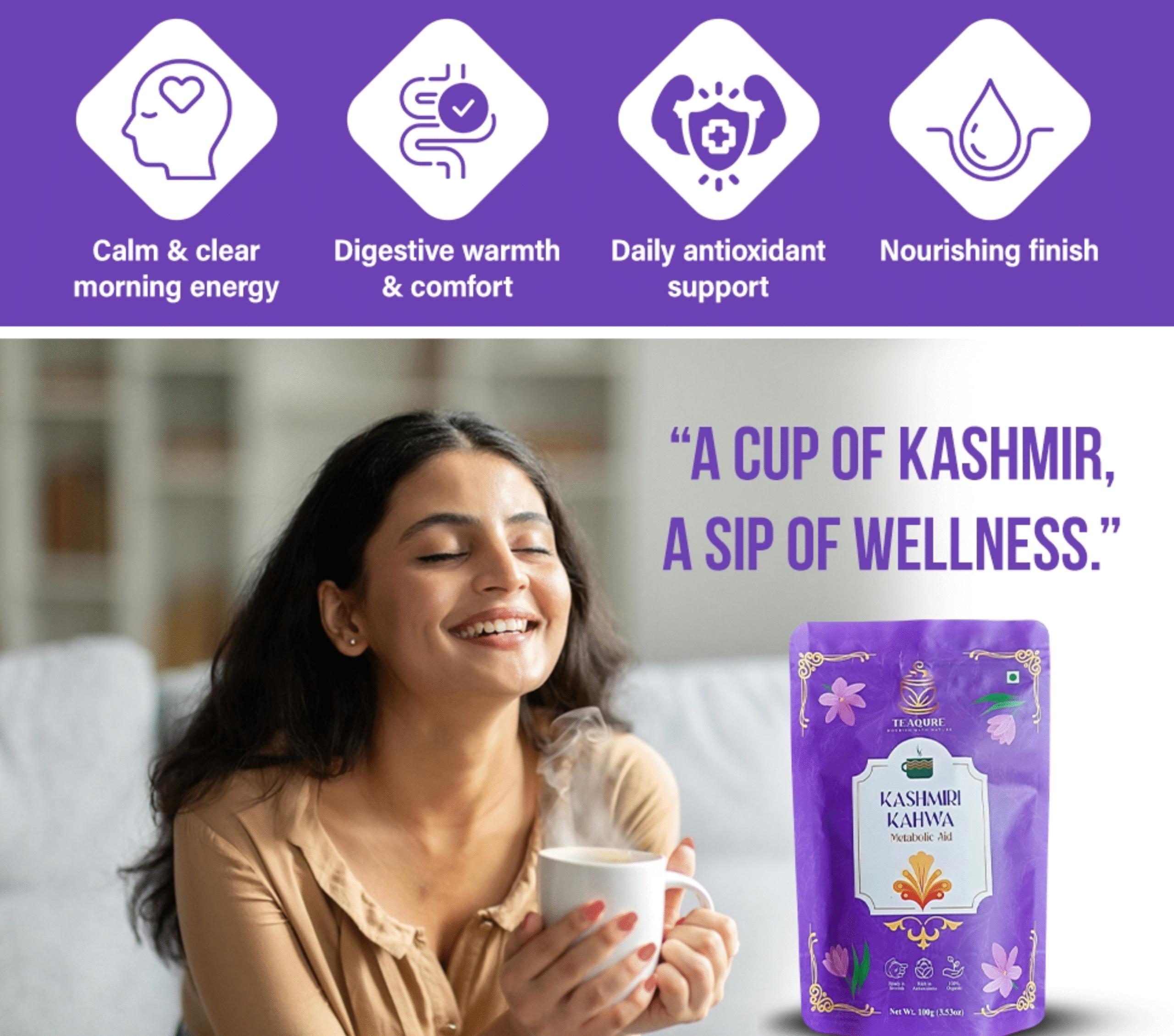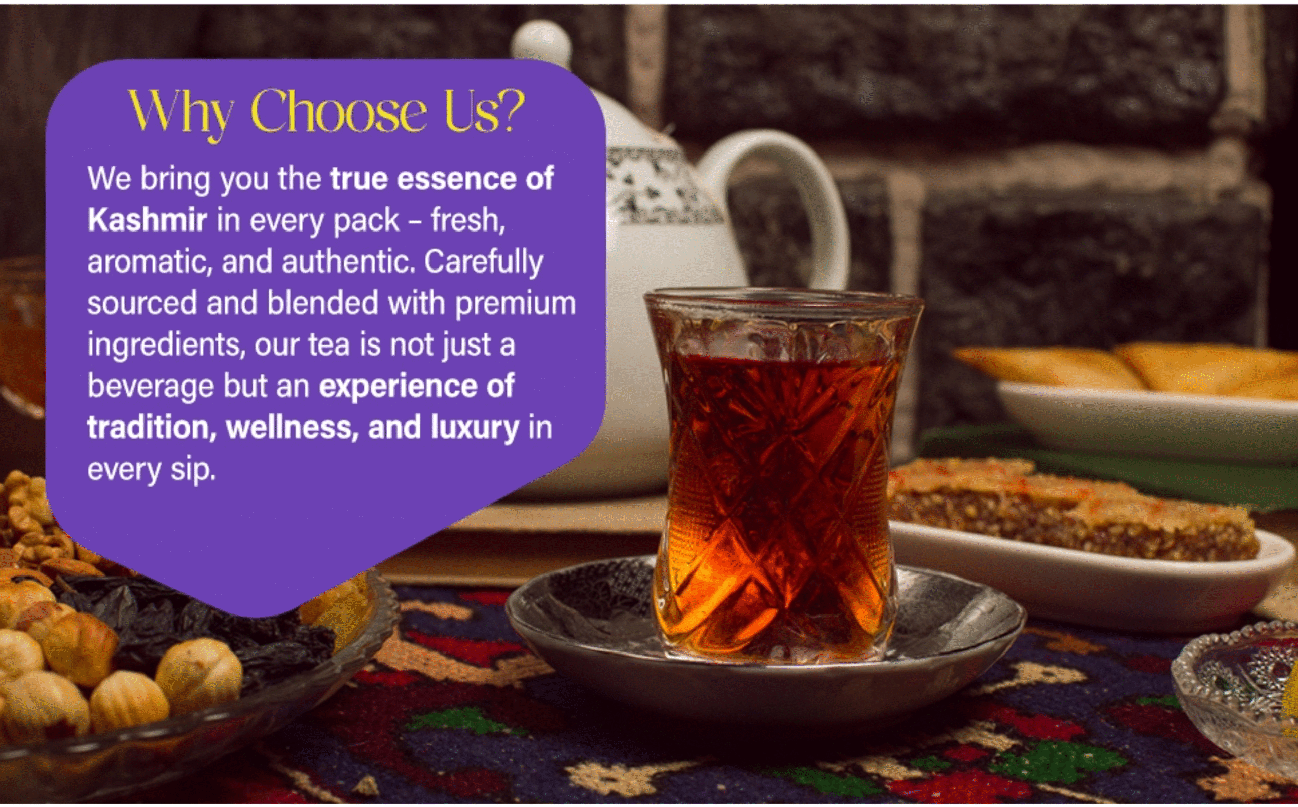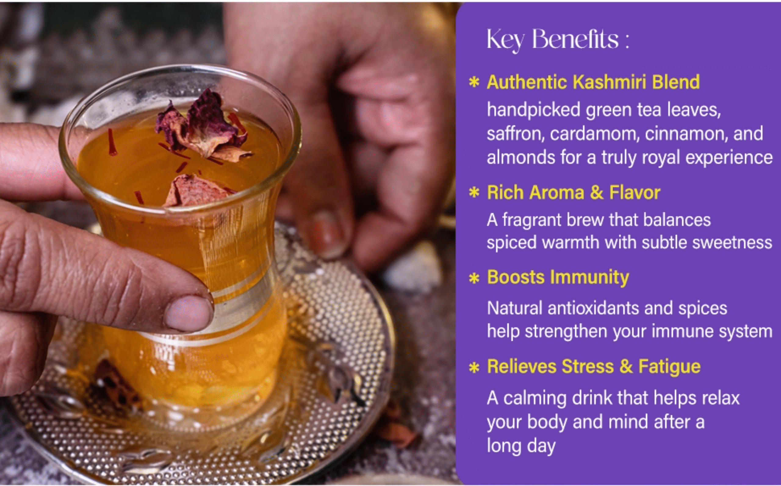 Kashmiri Kahwa is a fragrant, spiced green tea blend that has been cherished for centuries in the Kashmir Valley. This exotic infusion combines fine green tea leaves with a delicate mix of almonds, cardamom, cinnamon, cloves, and a touch of ginger. Its warming spices and uplifting aroma make it a perfect choice to begin your day with a refreshed mind and body.